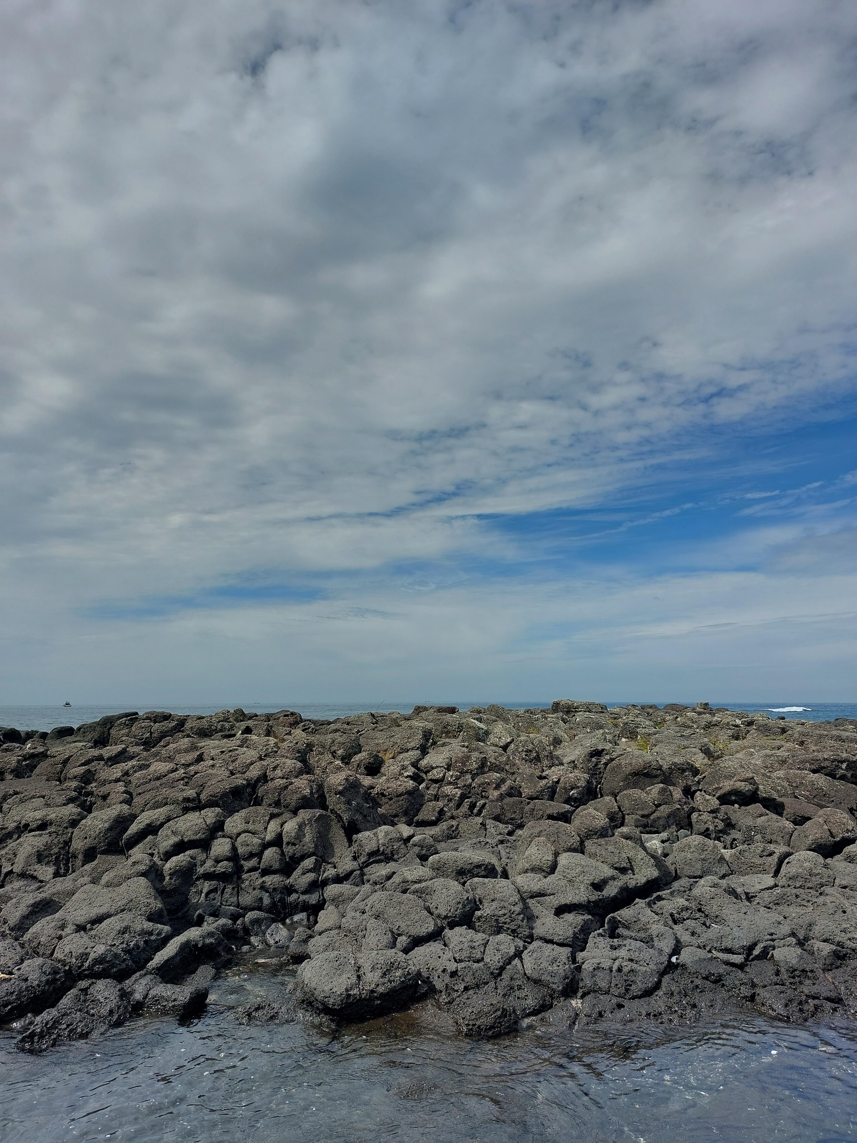 제주는 어디를 가나 바다였다. 그리고 검정 돌로 가득했다. 구멍 뚫린 돌에 담긴 투명한 물은 궁금증을 자아냈다. 언제 왔다 돌아가는가. 모슬포는 돌고래가 나올 거 같았다. 하지만 그런 기적은 일어나지 않았다. 일반 해안과 다르게 돌을 따라 바다에 더 가까이 갈 수 있어서 좋았다.